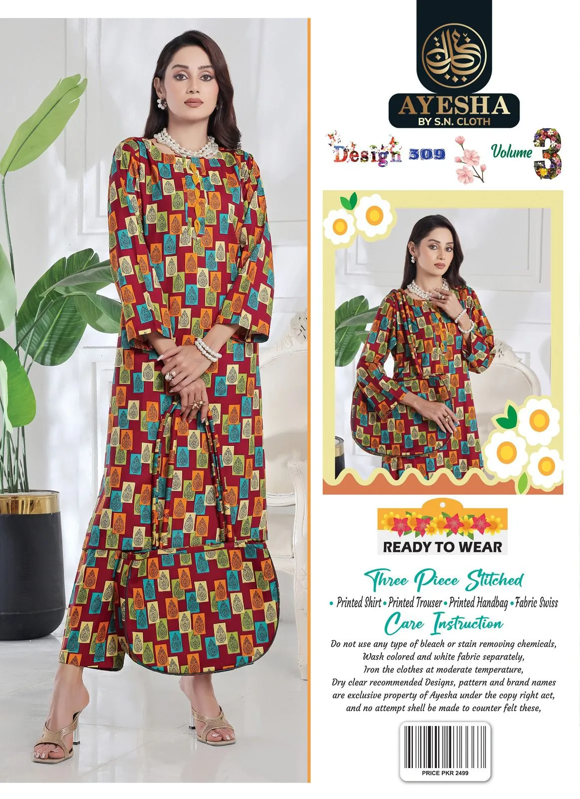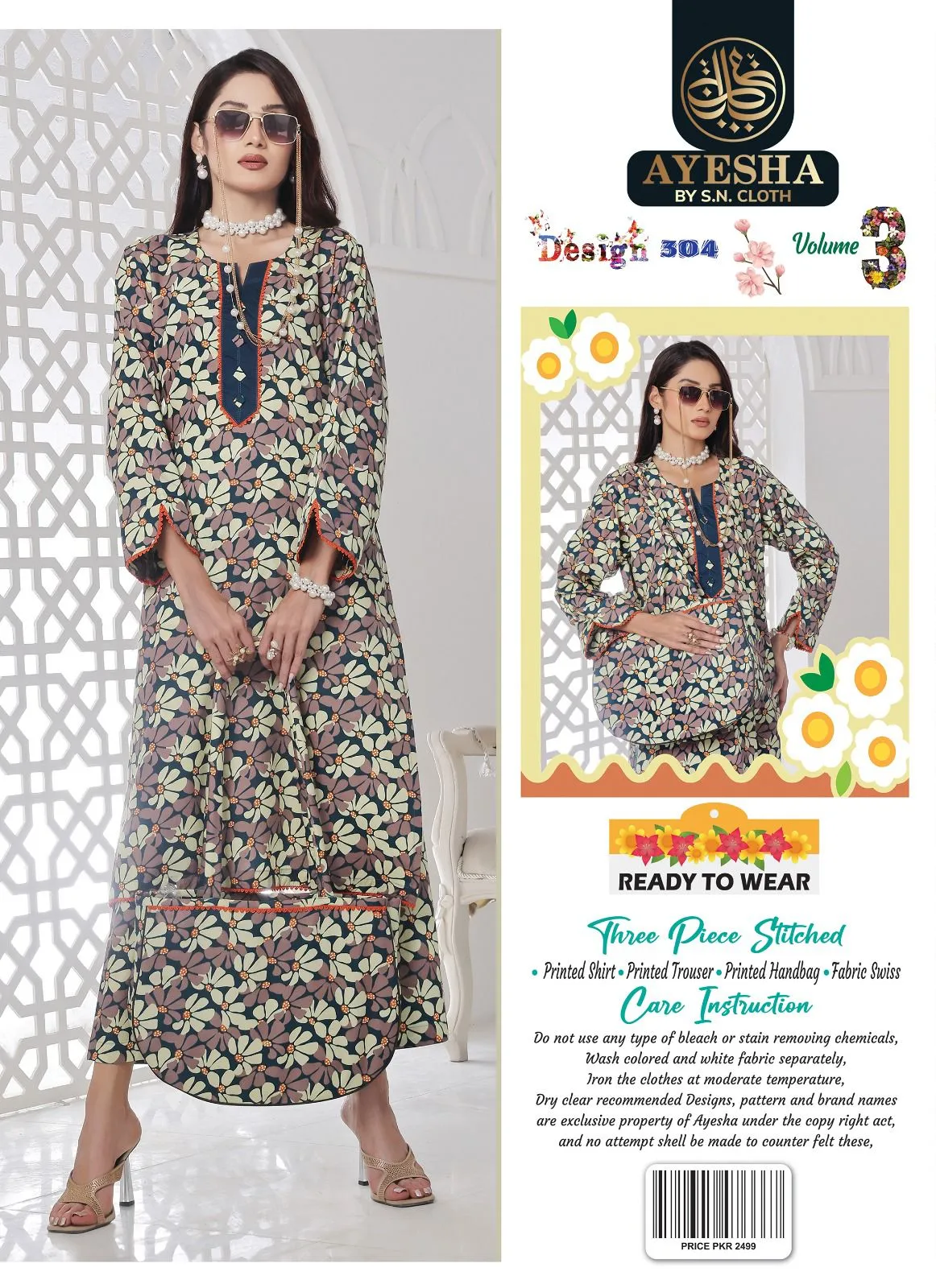 Apni wardrobe mein layein nayi shaan aur khubsurti Ayesha collection ke sath designer 3-piece suit jo style aur comfort ka perfect combination hai. Yeh collection un khawateen ke liye design ki gayi hai jo har mauqe par graceful aur confident look chahti hain.